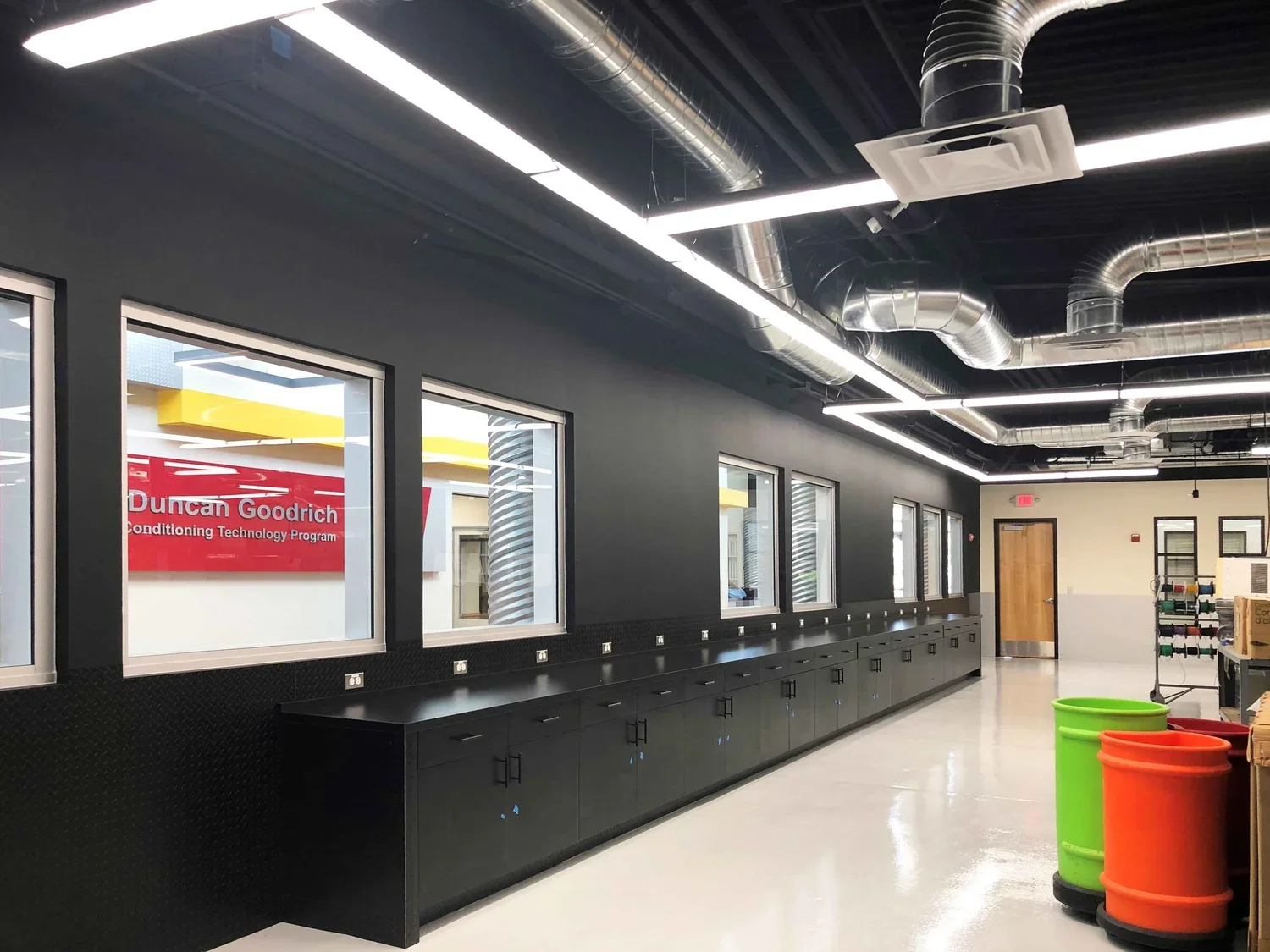 The CSN Western High School HVAC Consolidation project consisted of programming and design services for the HVAC program at the College of Southern Nevada. The programming phase included analyzing existing HVAC department spaces located at the Henderson Campus, Cheyenne Campus, and at Building 580 on West Cheyenne Avenue to determine the programming needs for a central and consolidated space housing the curriculum. After program analysis, the design team developed a scheme that would consolidate the HVAC program’s curriculum through a tenant improvement at Western High School. The end result defined each space within the tenant improvement in terms of function, square footage, equipment layout, finishes, lighting, electrical, mechanical/plumbing, and low voltage considerations.